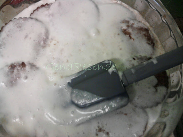 Bater mais o chantilly, agora cm o açúcar e as folhas de gelatina sem sabor, demolhadas e espremidas, bem incorporadas num pouco leite, mais de morno.